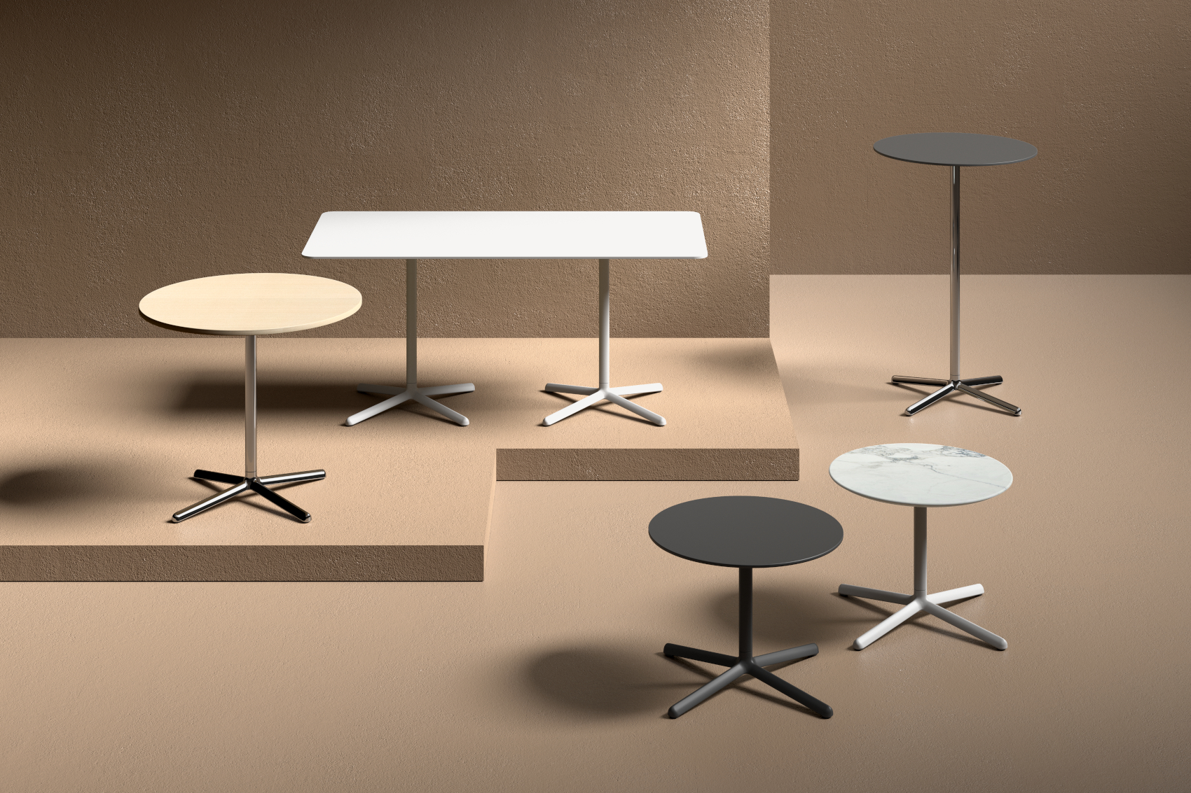 Useita väri- ja materiaalivaihtoehtoja.